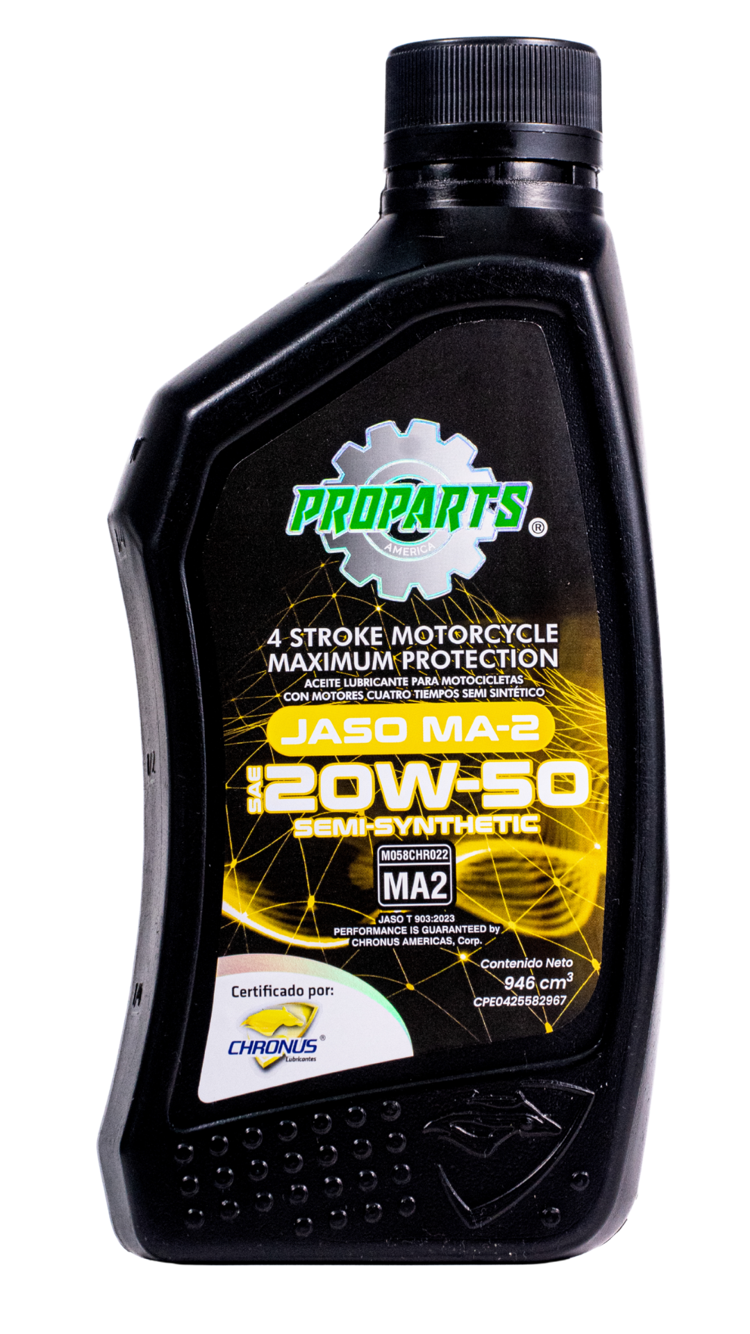 EL 4 STROKE MOTORCYCLE MAXIMUM PROTECTION SEMI-SYNTHETIC JASO MA-2 SAE 20W-50 cumple con los estándares establecidos en la especificación japonesa JASO T903: 2016, en el máximo nivel de calidad que indica la norma: MA-2, que establece los requerimientos de los lubricantes para motos 4 tiempos de cualquier tipo de cilindrada, especialmente para aquellas con alto nivel de severidad y un exigente desempeño.